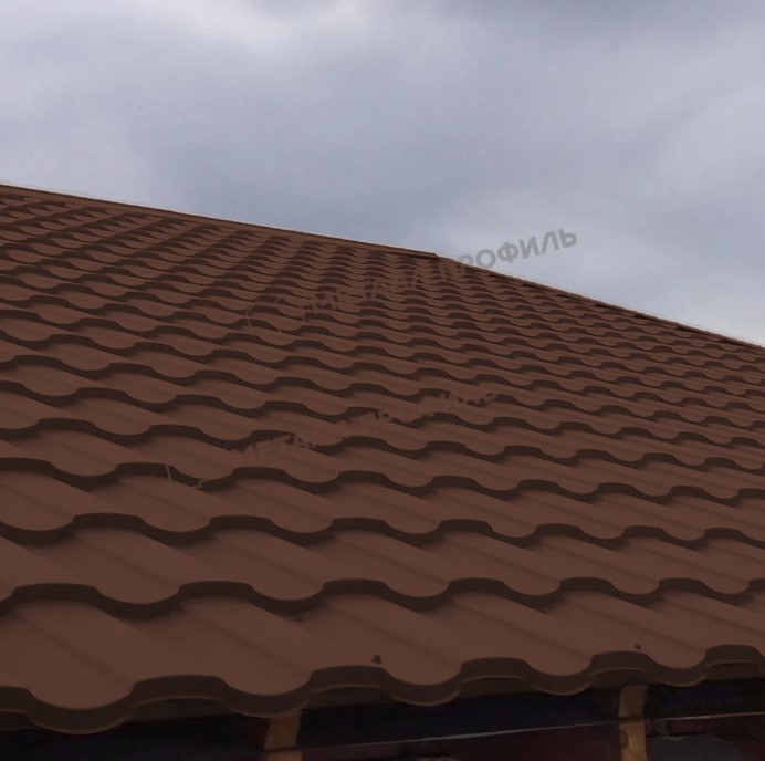 Металлочерепица с профилем Монтекристо-M толщиной 0,5 мм и покрытием PURMAN® в цвете RAL 8017 (коричневый шоколад) от компании Металл-Профиль представляет собой надежный кровельный материал, сочетающий эстетику классической черепицы с прочностью металла. Это идеальное решение для крыш жилых домов, обеспечивающее долговечность и привлекательный внешний вид.