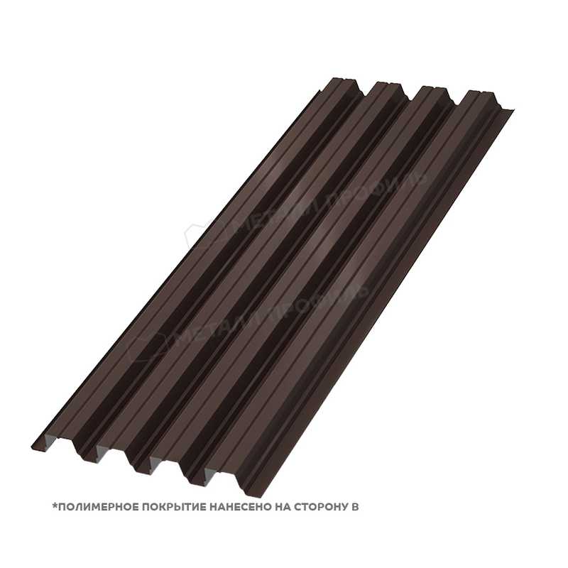 Уникальной чертой является комбинация толщины 1 мм с полиэстеровым слоем, что усиливает сопротивление ветровым нагрузкам. Профиль адаптирован для регионов с суровым климатом, где важна устойчивость к снеговым накоплениям. Кроме того, он обладает хорошей звукоизоляцией благодаря форме волны.